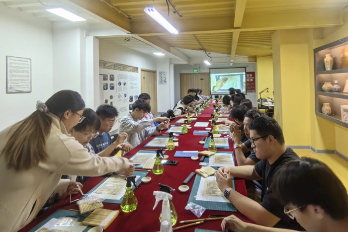參觀過程中,通過講解員的細致介紹,師生們不僅欣賞到了連環(huán)畫作品的精湛技藝和獨特魅力,還深入了解了每幅作品背后的歷史背景和創(chuàng)作故事。大家還在博物館古籍修復(fù)老師的講解和帶領(lǐng)下,開展了非遺古籍修復(fù)研學課程。此次參觀不僅讓活動參與者領(lǐng)略到了連環(huán)畫的藝術(shù)魅力,更激發(fā)了大家的文化自信和民族自豪感。