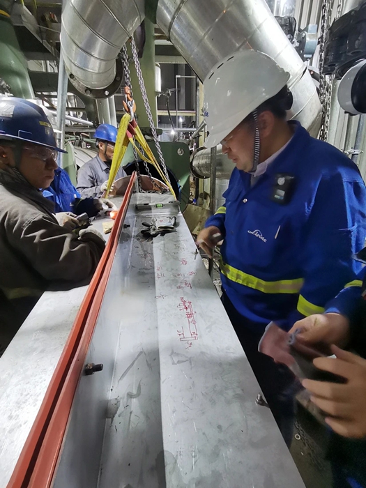 為保證檢修順利推進,負責(zé)控制系統(tǒng)升級的責(zé)任人左進春提前1年就開始準備備件。在檢修期間,他的愛人正趕上生產(chǎn)分娩,左進春在愛人分娩后第二天就從張家口家中返回工廠,投入檢修工作中。