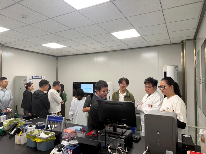 團(tuán)員青年們來到毗鄰清華大學(xué)、北京大學(xué)的北化生科公司國際生物島現(xiàn)場參觀學(xué)習(xí)。工作人員介紹了北化生科公司的整體規(guī)劃與發(fā)展歷程,重點(diǎn)介紹了集團(tuán)生物醫(yī)藥產(chǎn)業(yè)布局、核心服務(wù)平臺(tái)功能、重點(diǎn)產(chǎn)業(yè)集群優(yōu)勢以及未來發(fā)展目標(biāo)愿景。隨后,團(tuán)員青年們走進(jìn)實(shí)驗(yàn)室,專業(yè)人員為他們講解了基因測序等基礎(chǔ)知識(shí),并結(jié)合正在開展的科研項(xiàng)目,生動(dòng)介紹了這些技術(shù)在實(shí)際研發(fā)中的應(yīng)用場景與巨大潛力。