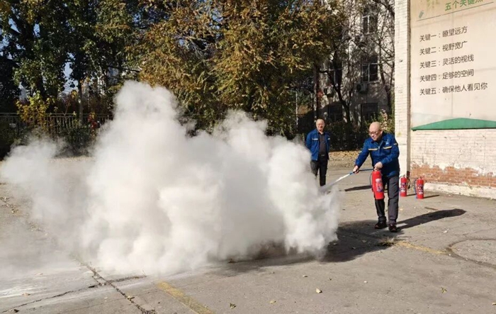 “提、拔、握、壓——對(duì)準(zhǔn)火源根部掃射!”在演練現(xiàn)場(chǎng),安全員手持滅火器,結(jié)合冬季干燥、火情易蔓延的特點(diǎn),向員工講解操作要領(lǐng),強(qiáng)調(diào)冬季滅火器維護(hù)重點(diǎn)。