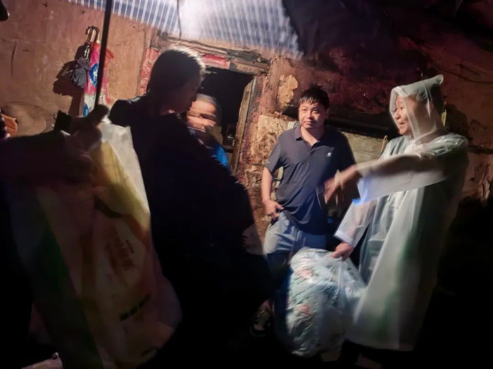 汛情就是命令。面對(duì)突如其來(lái)的洪水,本就日夜堅(jiān)守在村委會(huì)的李東,與村委委員一起連夜趟著洪水,去多戶村民家中查看水位和房屋漏雨情況,在冒雨拉網(wǎng)式檢查中,李東和村委委員先后將2戶有安全隱患房屋內(nèi)的6名村民,連夜轉(zhuǎn)移至村委會(huì)臨時(shí)安置點(diǎn)。當(dāng)大家要喘口氣歇歇腳兒時(shí),28日凌晨3時(shí)許得到消息,位于村口的小商店出現(xiàn)險(xiǎn)情,60多歲的老兩口被困店內(nèi)。接到消息,李東和村委委員緊急出發(fā)。由于洪水流速非常快,他們小心翼翼地扶著墻體前行。在到達(dá)商店后,此時(shí)洪水已經(jīng)淹沒(méi)房屋門(mén)檻灌入店內(nèi)。面對(duì)緊急情況,李東和村委會(huì)干部們?nèi)饩缺焕Ю先?。李東在前面小心探路,另外兩人護(hù)住老人,在大雨中最終將兩位老人撤離到安全地帶。