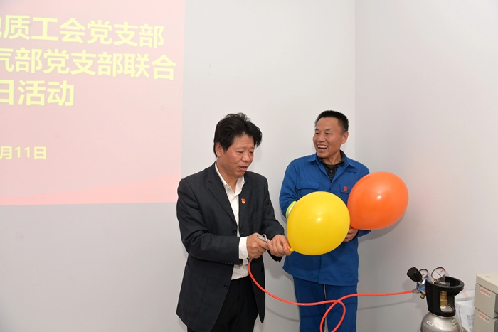 10月11日下午,中國能源化學(xué)地質(zhì)工會主席、分黨組書記蔡毅德,帶領(lǐng)該黨支部10余名黨員興致勃勃地走進(jìn)北普公司安定工廠,與公司包裝氣黨支部的黨員同志們一起開展主題黨日活動。北京化工集團(tuán)黨委副書記、工會主席吳瑞峰,集團(tuán)工會相關(guān)負(fù)責(zé)同志,北普公司領(lǐng)導(dǎo)班子成員參加活動。