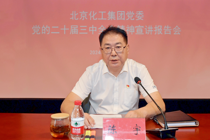7月31日,北京化工集團黨委召開黨的二十屆三中全會精神宣講報告會,黨委書記、董事長陳宇作宣講報告;7月29日,集團黨委理論學(xué)習(xí)中心組專題學(xué)習(xí)黨的二十屆三中全會精神;7月24日,集團黨委常委會集中學(xué)習(xí)黨的二十屆三中全會精神??焖俣?、多形式,深研學(xué)、重實效,北京化工集團黨委深入學(xué)習(xí)宣傳黨的二十屆三中全會精神,掀起學(xué)習(xí)宣傳的熱潮。