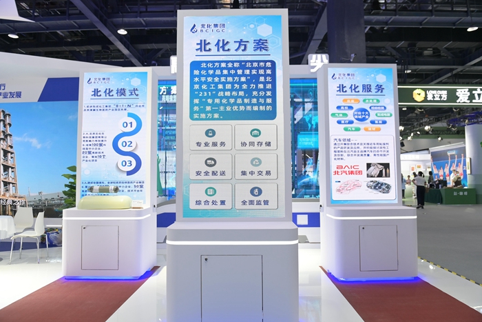 突出展現(xiàn)集團(tuán)發(fā)揮主責(zé)主業(yè)優(yōu)勢,圍繞首都“四個中心”功能建設(shè),積極融入“五子”聯(lián)動新格局取得的豐碩成果,是北京化工集團(tuán)此次參展的一大亮點。“三個北化”——“北化方案”“北化模式”“北化服務(wù)”展屏矗立其間,構(gòu)筑安全管理全產(chǎn)業(yè)體系、發(fā)展生物醫(yī)藥大健康產(chǎn)業(yè)、服務(wù)首都產(chǎn)業(yè)鏈安全,成為集團(tuán)全新戰(zhàn)略方向和目標(biāo)。