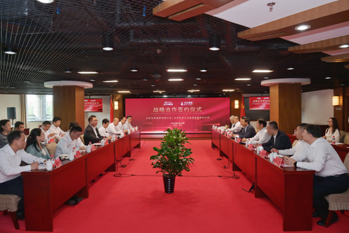 9月24日上午,北京化工集團(tuán)與北汽集團(tuán)戰(zhàn)略合作協(xié)議簽約儀式在北京化工集團(tuán)總部舉行。北京化工集團(tuán)黨委書記、董事長陳宇,黨委副書記、董事、總經(jīng)理?xiàng)钚褫x;北汽集團(tuán)黨委書記、董事長張建勇出席簽約儀式。北京化工集團(tuán)副總經(jīng)理張榮寰,北汽集團(tuán)黨委常委、副總經(jīng)理胡漢軍代表雙方簽署協(xié)議。