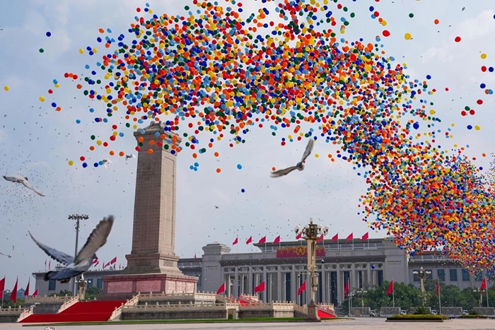 2025年9月3日,天安門(mén)廣場(chǎng)騰空而起的8萬(wàn)支彩色氣球?qū)?ldquo;紀(jì)念中國(guó)人民抗日戰(zhàn)爭(zhēng)暨世界反法西斯戰(zhàn)爭(zhēng)勝利80周年大會(huì)”再次推向高潮……