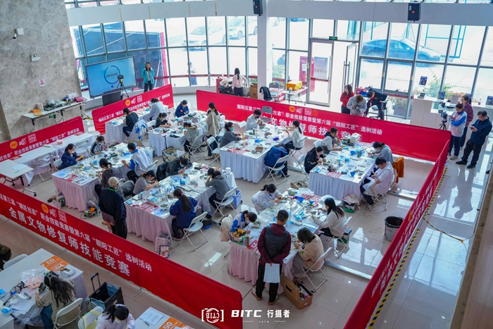 在此次大會(huì)現(xiàn)場實(shí)時(shí)直播的“文物修復(fù)師技能競賽決賽”,依托技師學(xué)院先進(jìn)的標(biāo)準(zhǔn)化實(shí)訓(xùn)場地與專業(yè)設(shè)備資源,匯聚故宮博物院、知名企業(yè)及相關(guān)院校的專家學(xué)者,共同為參賽選手打造了一個(gè)高水準(zhǔn)、專業(yè)化的競技平臺(tái)。經(jīng)過10月中旬初賽的激烈角逐, 脫穎而出的來自全北京市75名優(yōu)秀文物修復(fù)師晉級(jí)決賽,在“金屬修復(fù)”、“陶瓷修復(fù)”和“紙張書畫修復(fù)”三大賽項(xiàng)中展現(xiàn)精湛技藝。